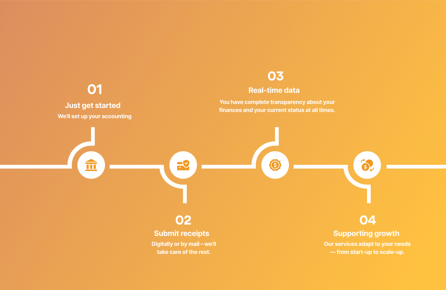 Whether it's financial accounting, taxes or social insurance: We offer you a full-service package that handles your back office efficiently and stress-free so that you can concentrate fully on your growth.